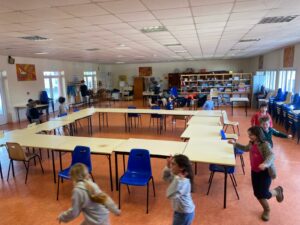Les CE1A pratiquent des jeux de coopération avec Axel depuis le mois de novembre.