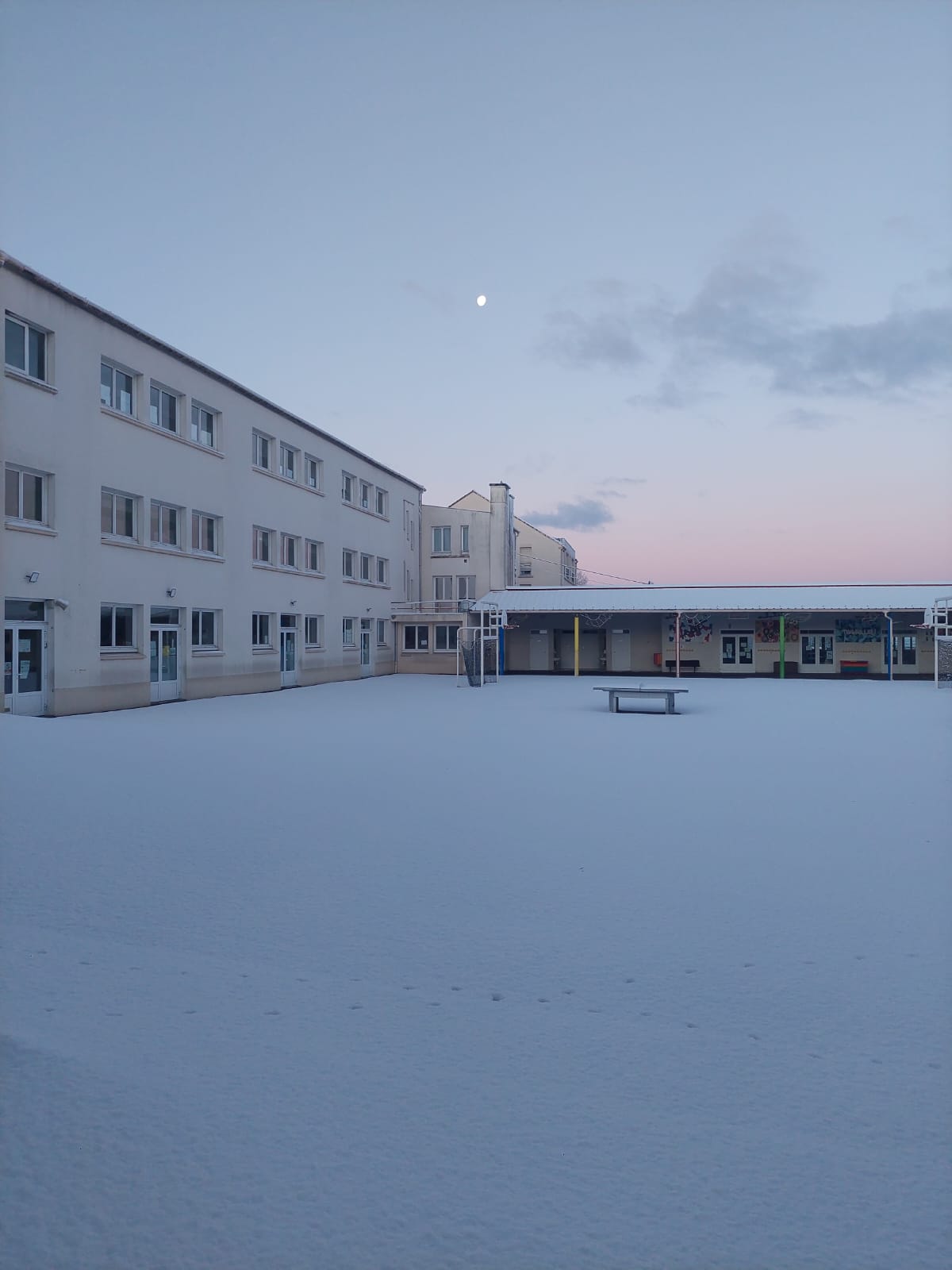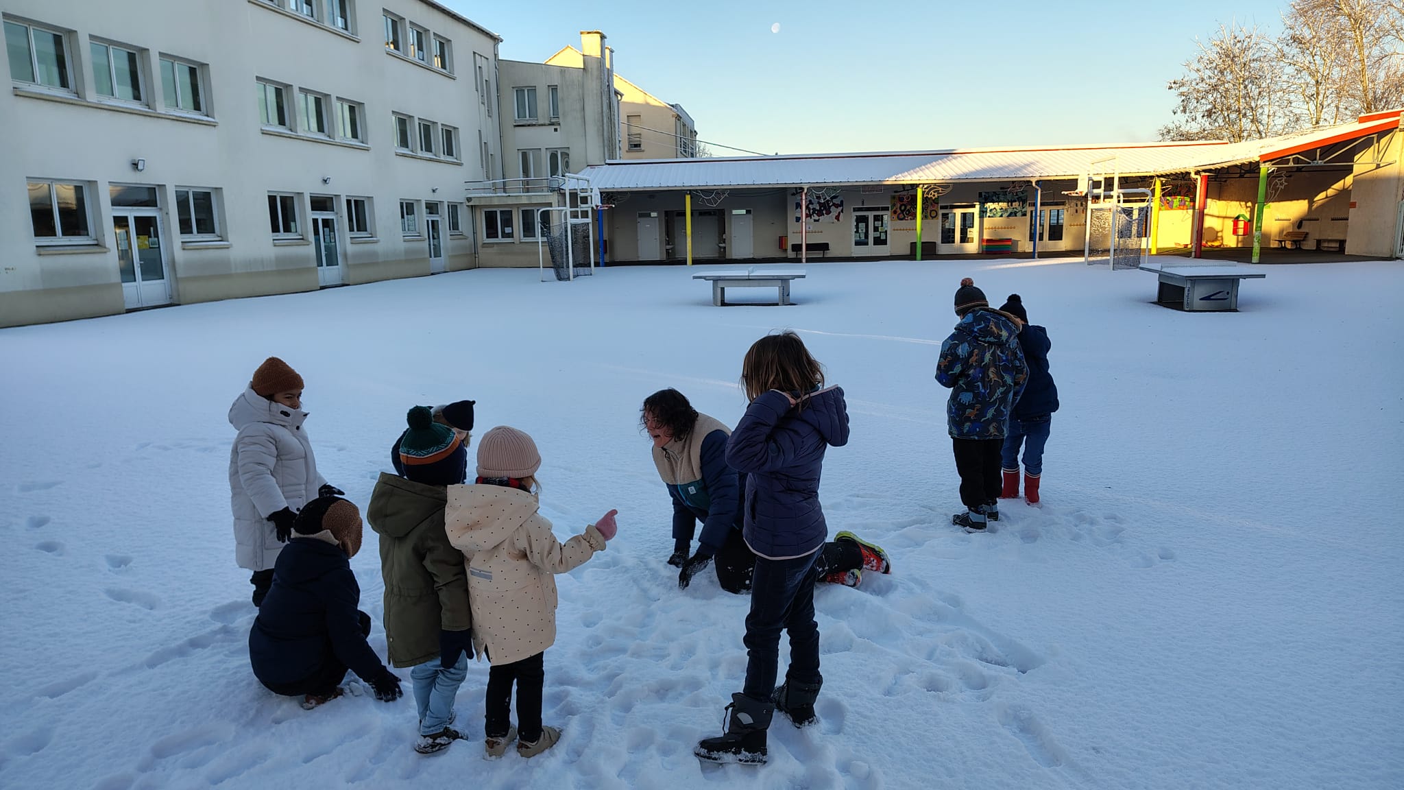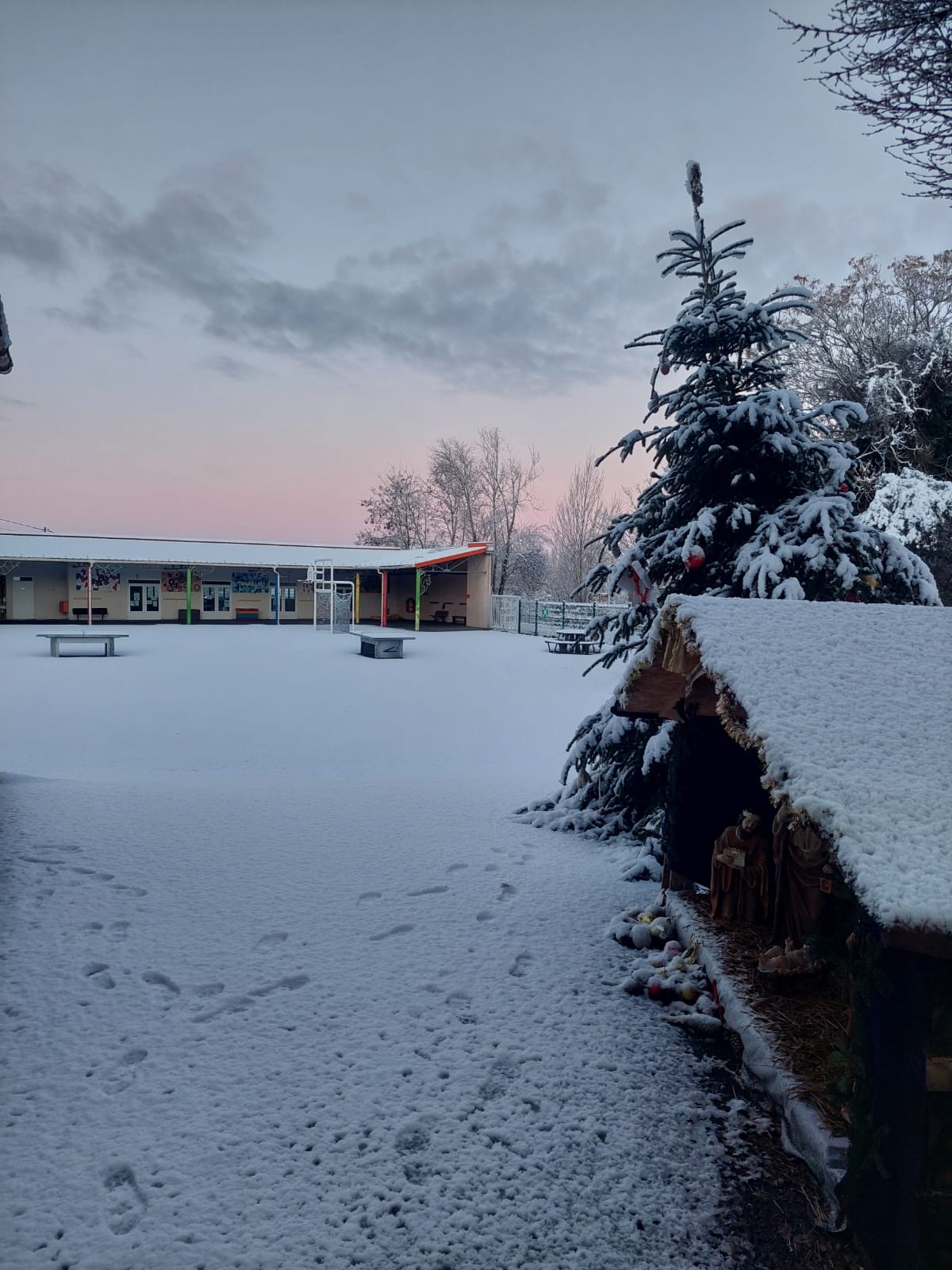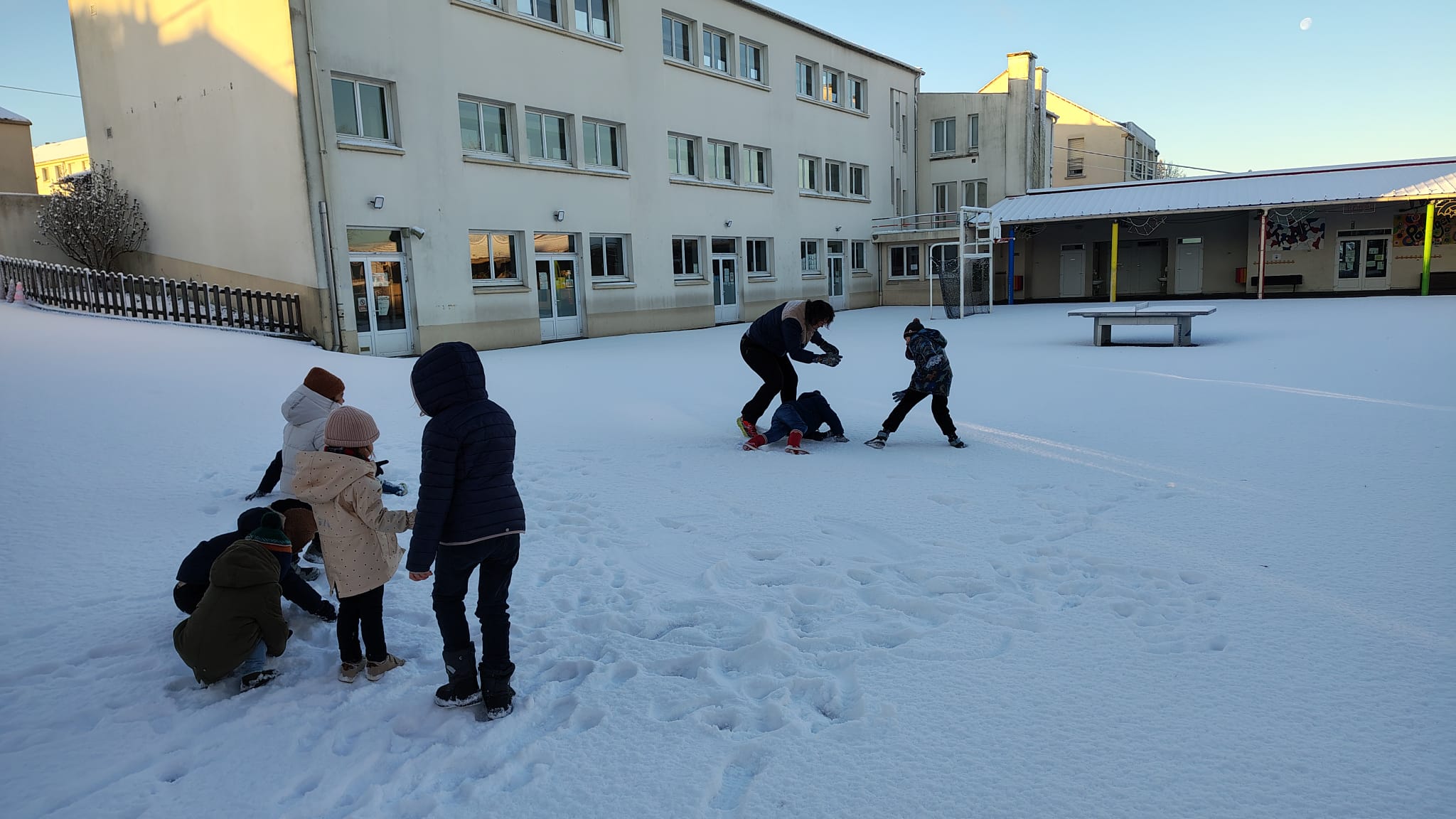 La neige s’est invitée en ce mardi 6 janvier. L’école a pu organiser un accueil grâce à quelques enseignantes et ASEM qui ont pu se rendre à pied sur site.