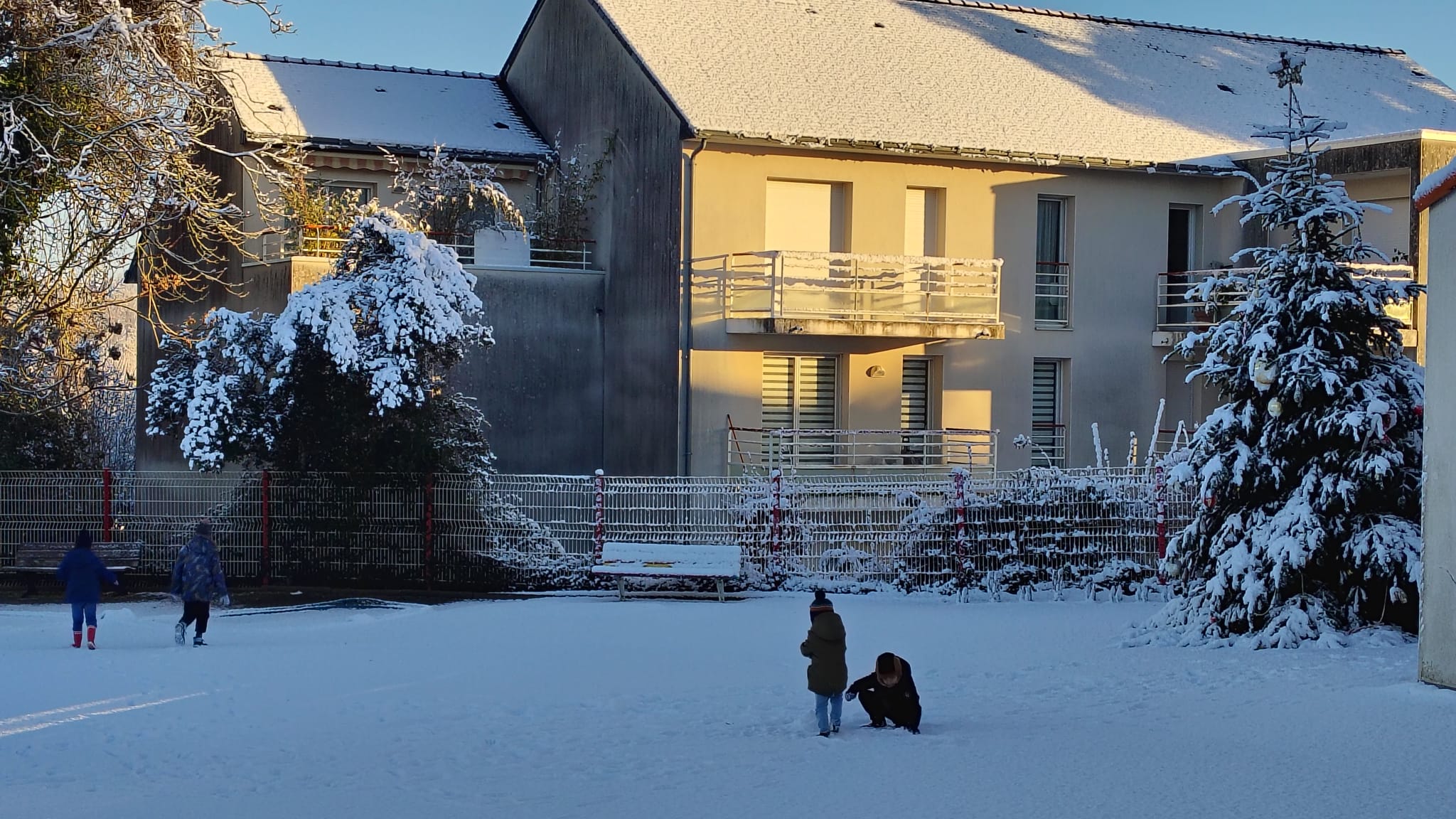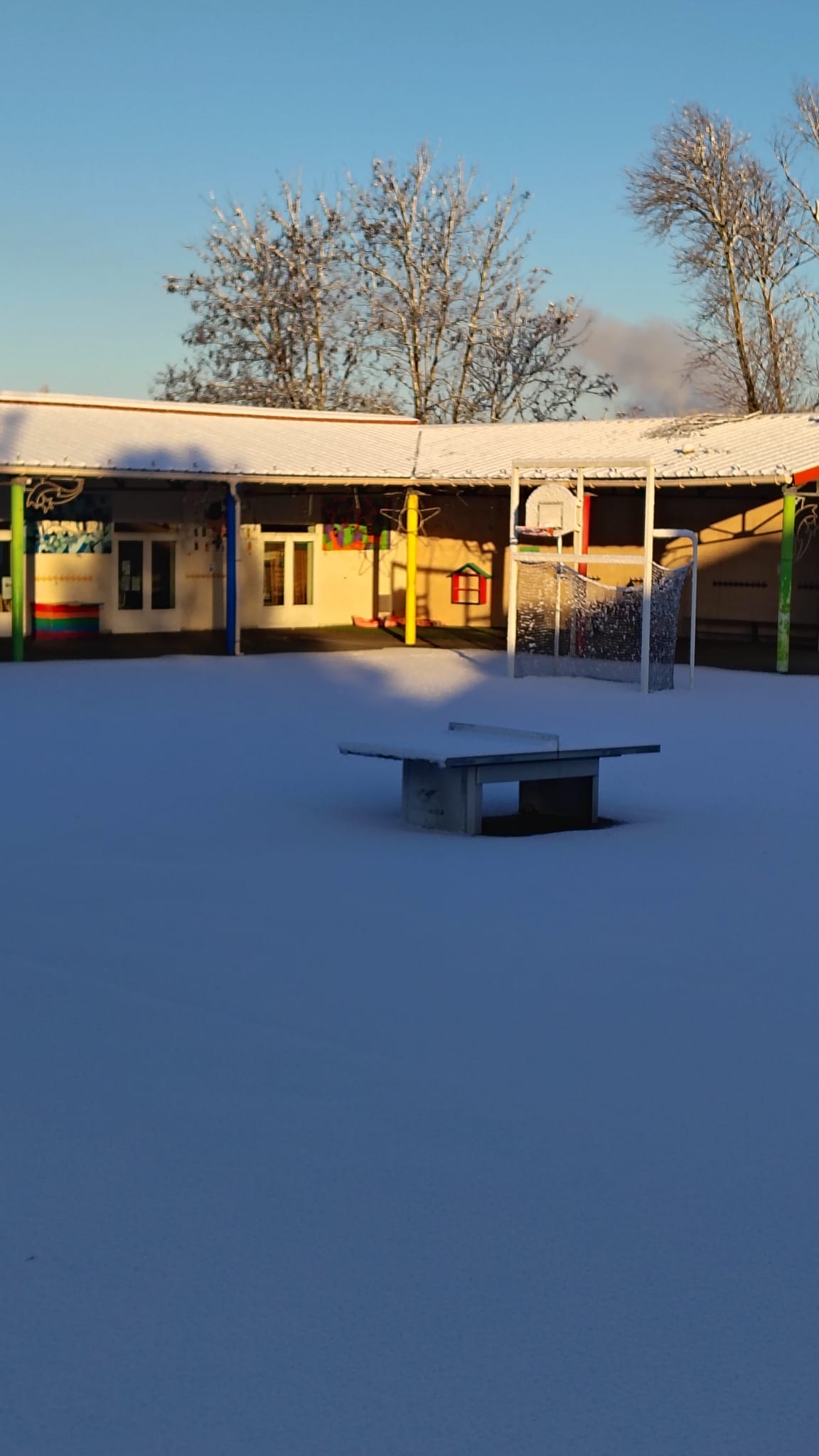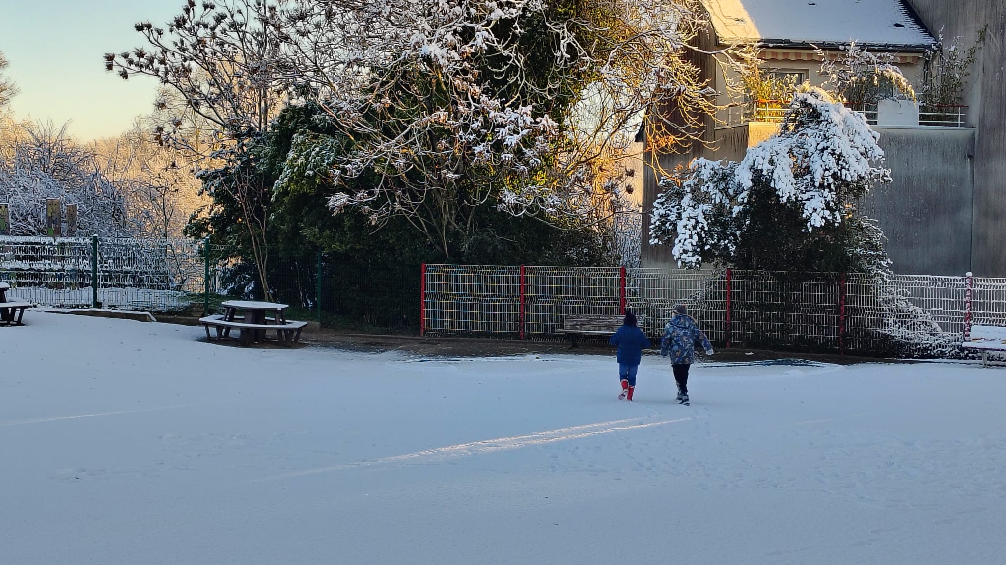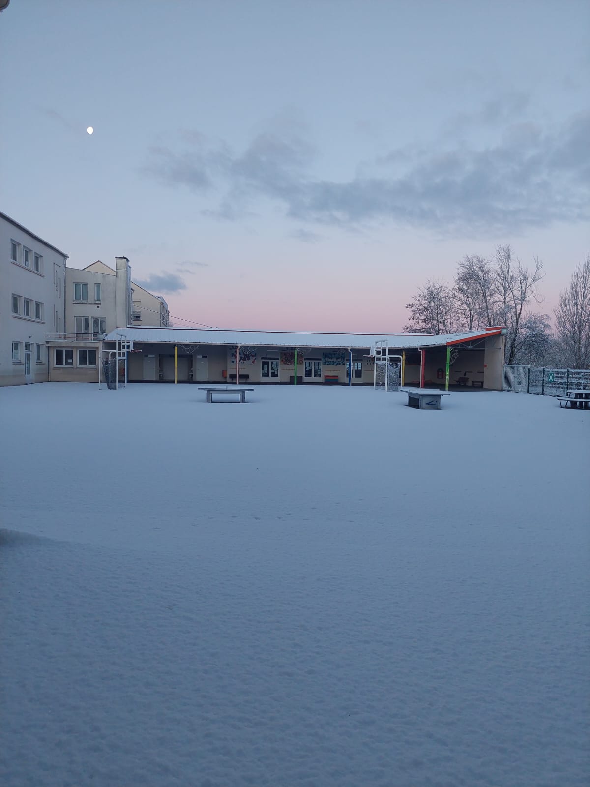 La neige s’est invitée en ce mardi 6 janvier. L’école a pu organiser un accueil grâce à quelques enseignantes et ASEM qui ont pu se rendre à pied sur site.